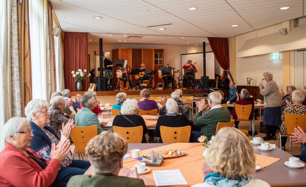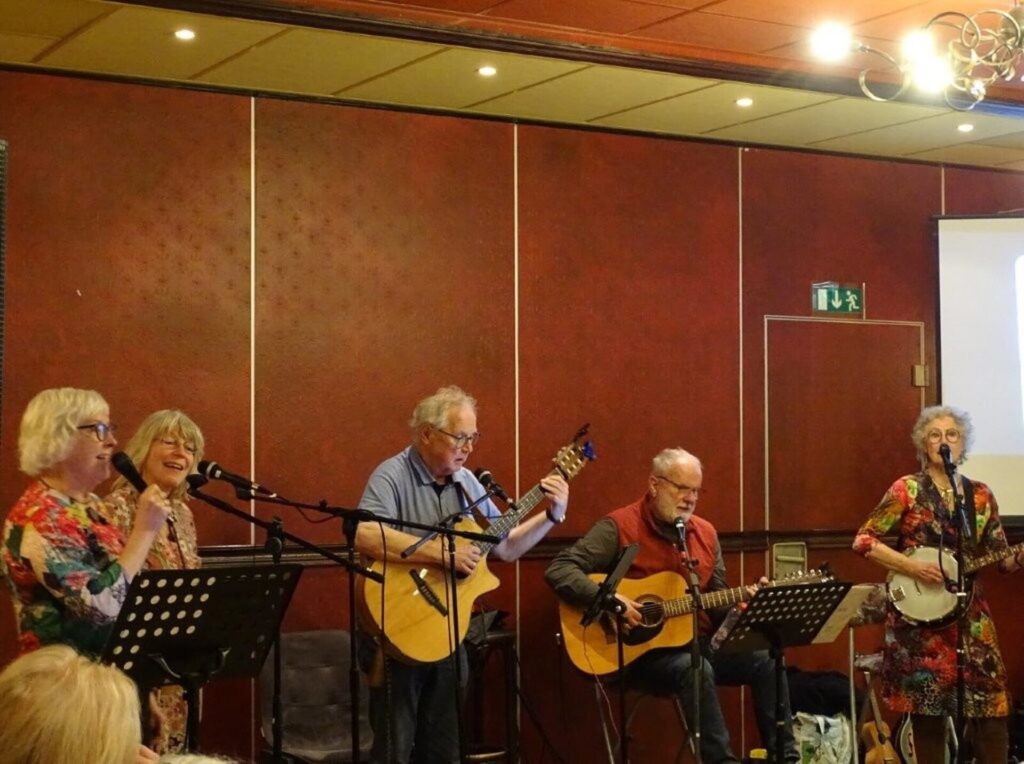 Zuidhorn – De Ongenode Gast is een echte muziekliefhebber. Sinds een aantal jaren is er een liefde voor Ierse en Schotse volksmuziek aangewakkerd. Toevallig is dit precies het straatje waar het repertoire van de groep Autumn Flowers in valt. De voorzitter heeft met een woordje de middag geopend en het is daarna één en al gezelligheid met de muziek van Autumn Flowers, waarvan drie leden ook uit Westerkwartier komen. Ze zingen Ierse en Schotse muziek, maar af en toe ook iets in het Nederlands. Er worden papieren uitgedeeld zodat er af en toe ook gezellig meegezongen kan worden. En daar wordt absoluut gebruik van gemaakt. Er wordt luidkeels meegezongen en geklapt. De Ongenode Gast kan zich ook even niet inhouden wanneer het ‘Soon may the Wellerman come’ door de zaal klinkt.
